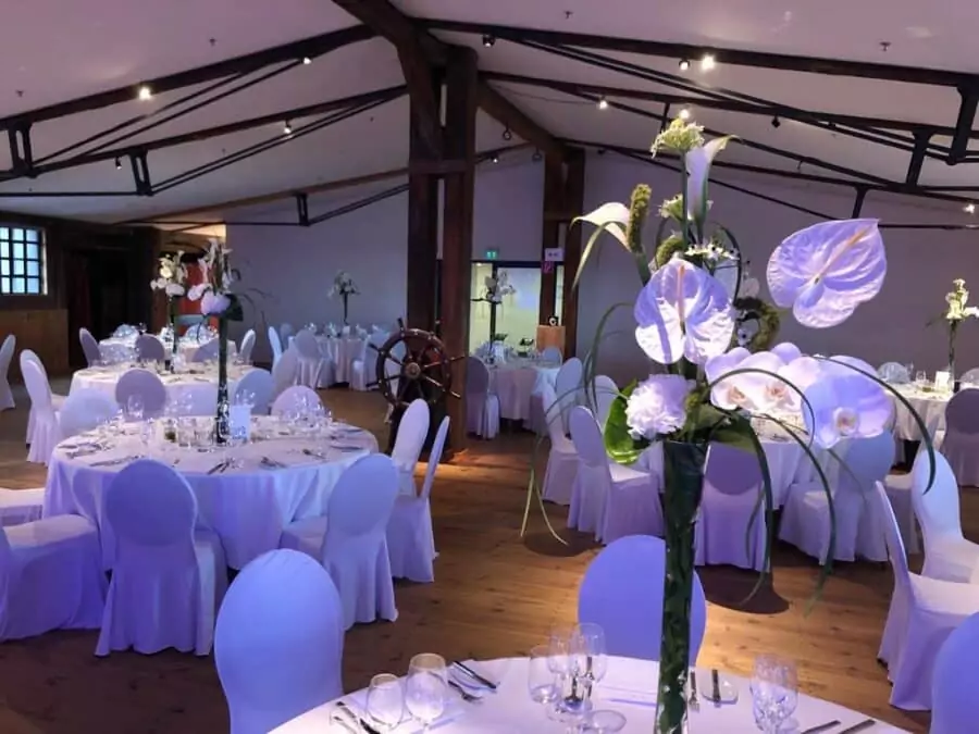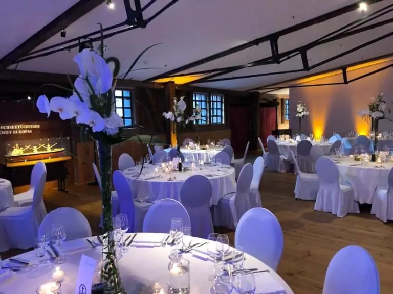 This special location is easily accessible via two spacious elevators and, thanks to a glass wall, is ideal for events of various sizes. In addition to the historic maritime flair, the two roof terraces, measuring 46 m² and 35 m², offer the best views of the Speicherstadt and Hamburg city center, as well as the Elbe, the harbor, and HafenCity.