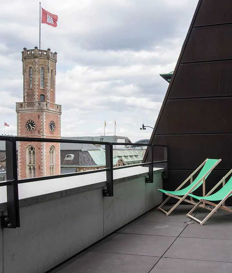 Meetings and celebrations overlooking Hamburg's old town on several floors. Design with the best view, always different and highly variable for what matters most: your guests.