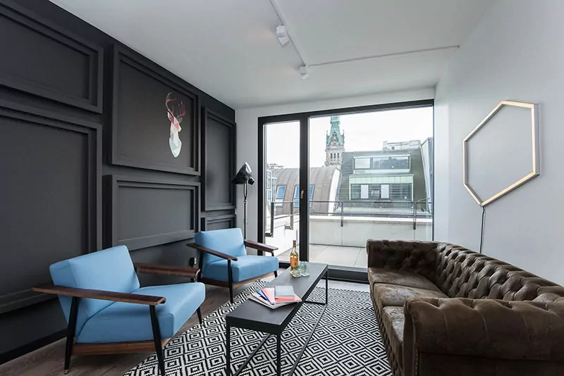Unorthodox interior design and magnificent views of Hamburg city centre make this fully equipped loft space an event hotspot for up to 60 guests.
