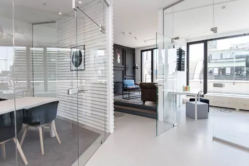 This is ensured by wide, floor-to-ceiling windows and two large roof terraces, among other features.