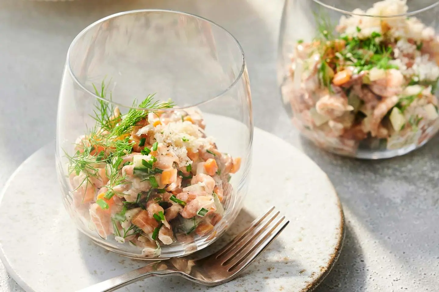 If you prefer a hot or cold buffet, we start with our popular starters: marinated fried mackerel with coriander mayonnaise and a trilogy of cream cheese, pumpernickel and courgette with vegetarian caviar. For the main course, we recommend our oven-baked pasta gratin with celery and walnut filling or cod loin in fennel and shellfish jus. For a delicious finale, choose your favourites from our wide selection of delicious desserts.