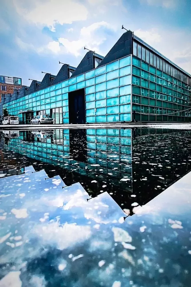 The studio is located directly next to the parking lot. It has a large exterior door with a width of 3.20 m. The studio area measures 150 square meters.