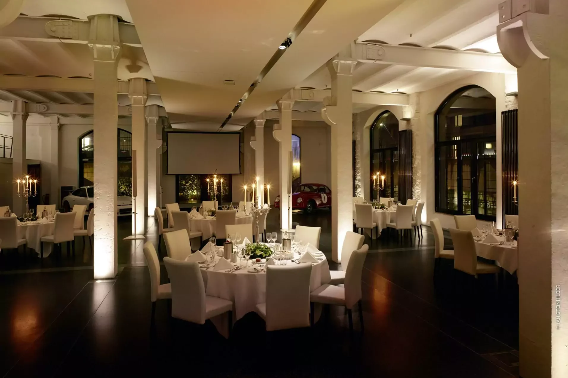 The heritage-protected factory building offers a unique blend of modern architecture and historic automobiles with many options for up to 1,200 guests.